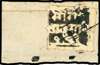 1864 (1a) black on cream wove paper, touching to good margins, used on small piece, cancelled in neat m/s, creasing to piece, adhesive unaffected, fine and scarce. SG 4 £1600