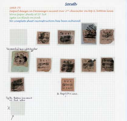 1868-75 Typeset 1a black on pink, (first character in bottom line as type A) collection, mostly good margins, used with a couple on piece, cancelled by m/s or thumb print, mixed condition, with fine. SG 10 (10)