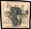 1868-75 Typeset 1a black on pink wove, setting I, close to good margins, variety BOTTOM LINE WITH ACCENT OVER SECOND LETTER, used with thumb print cancel, vertical crease at left, still a fine example of this rare variety. SG 8b £1100