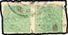 1914 3p green, ERROR IMPERFORATE BETWEEN HORIZONTAL PAIR, USED (!), cancelled by native cds's, pair creased and touched at foot, nonetheless very rare, the first used example we have seen, unpriced in used condition. SG 40ba