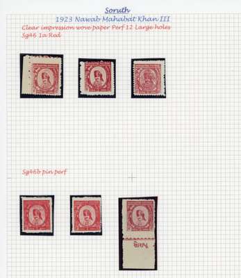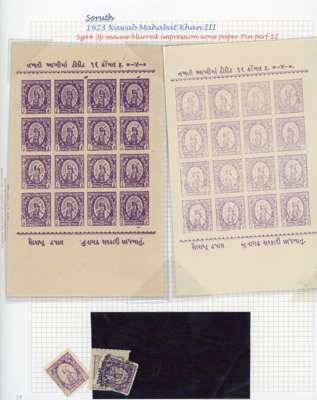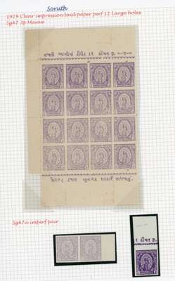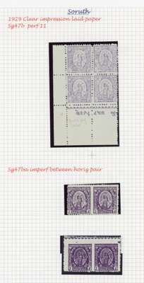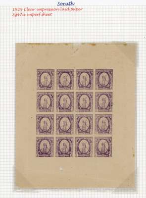 1923-29 mint and used collection on pages, with complete sheets, imperf and listed perf and paper types, including 1923 1a red, blurred impression complete sheet of 16 (8x2), 1923 1a surcharged type 4 complete sheet of 16, 1923 3p mauve complete panes of 16, (4x4), with used block of 8, 1924 red pin perf 12 in complete sheet of 16, 1924 clear impression 1a red imperf singles (2),1929 clear impressions on laid paper, 3p mauve complete sheet of 32 (two panes of 16) imperforate and imperf sheets of 16, and imperf sheet of 16 on toned laid paper, perf 11 in pairs and block of four, generally fair to fine condition. SG 42-47