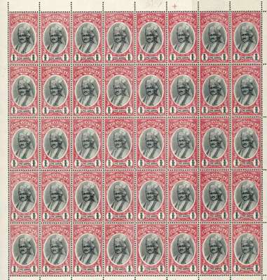 1935 Postage and Revenue 1a black & carmine, in complete sheet of forty (8x5), unmounted o.g. typical folds and minor perf separation at foot, otherwise fine. SG 57 £480+