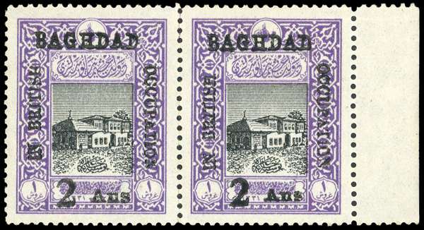 Iraq Baghdad 1917 2a on 1pi Postal Jubilee perf 12½ pair