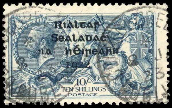 1922 10s dull grey-blue overprint T3 by Thom with two, part Dublin cdss for '8 JA 23' fine used SG 46 cat £1800