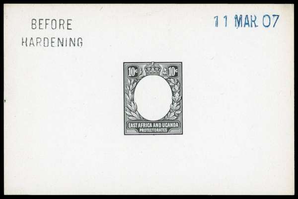 1907 10c De La Rue die proof in black on glazed card dated “11 MAR 07" in blue and endorsed “BEFORE HARDENING” in black, fine.