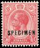 1921-32 8c carmine, Script wmk, opt "SPECIMEN", prepared for use in 1922 and distributed by the UPU but never issued, brilliant part o.g. Slightly heavy hinge remnant on reverse, but seldom seen so fresh. Very scarce. SG 240es, £500