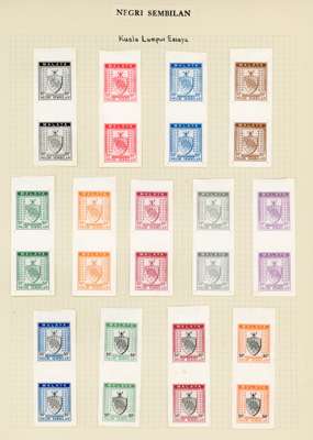 1933-34 Survey Department 50c Coat-of-Arms with closed sheaves of rice essays on glazed paper (Norris type H), thirteen different colours or combinations with guide lines in vertical pairs. Fine