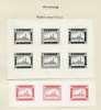 1933-34 Survey Department 50c Mosque essays on glazed paper, block of six in black (151x102mm) with Norris types M11 (2), M12-13, M15(2), central horizontal crease not affecting the designs, and a horizontal strip of three (150x44mm) in red with Norris types M11,13,14, all with guide lines. Good to fine. (2 items)
