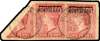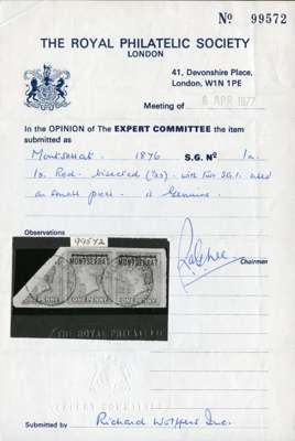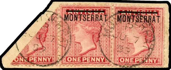 1876 1d bisected (½d) in horizontal strip with two 1ds, tied to a small paper piece with RPS certificate (1977), fine used SG 1a