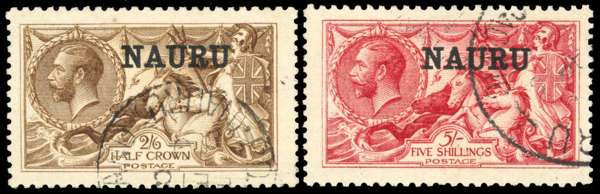 1916 2s6d brown and 5s bright carmine De La Rue printings fine used. SG 21, 22