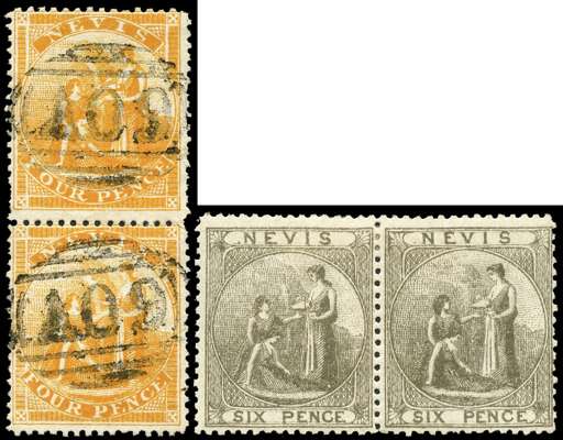 1987-8 6d grey horizontal pair, o.g., lovely colour. Pencil-signed Saatchi. Also 4d fine used vertical pair, good colour, a few nibbled perfs. SG 18-19, £576