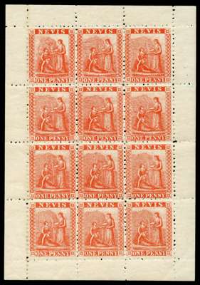 1878 1d vermilion-red perf 11½ sheet, large part or full o.g. Pane 19 with #4 large white flaw to left of kneeling figure, bright shade. SG 22, £780