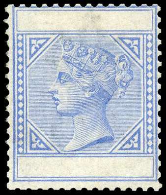 1879-90 De La Rue Colour Trial in blue perf 14, blank name and duty plates, on gummed, watermarked paper, lightly hinged o.g. Perfs at lower left very slightly trimmed, otherwise fine. Ex Borromeo and Freeland