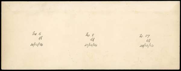1934 (December) Stamp Printing Office die proofs of the 1935 Air Mail issue, sunk into thick card, with dates and numbers on reverse as follows: 1d green 20/12/34 No. 5, 3d blue 21/12/34 No. 8, 6d brown 20/12/34 No.37. Probably unique in private ownership. Ex Sir Gawaine Baillie SG 570var/572var