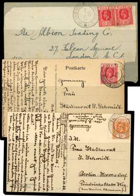 Cameroons postal history collection all franked by Nigeria adhesives bearing Cameroons Under British Mandate cdss, including 1932 cover addressed to London franked by KGV 1d (2) tied by Tiko cds for 20 JUL, backstamped by Victoria Cameroons cds, three picture postcards addressed to Berlin, 1942 censored cover addressed to California and 1950 Air Mail envelope franked by KGVI 3d (4) & 1/- addressed to Chicago, generally fair to fine condition.