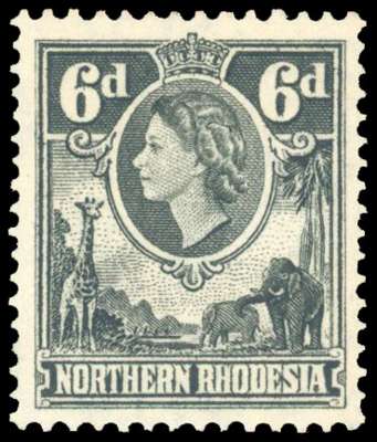 Northern Rhodesia 1953 6d watermark inverted mint