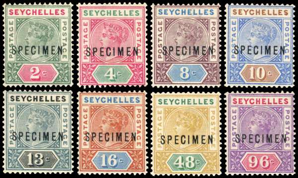 Seychelles 1890-92 Die I set of 8 optd ‘SPECIMEN’