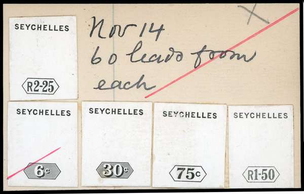 Seychelles SG 29, 33, 35, 36 1899 New Value Duty Plate Die Proofs