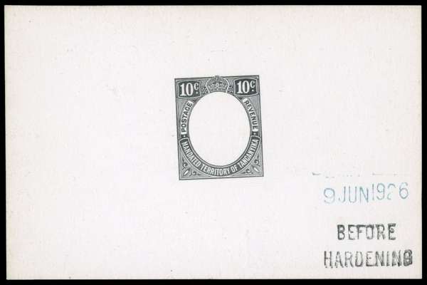 1927-31 10c De La Rue frame die proof in black on glazed card, dated “9 JUN 1926” in blue and endorsed “BEFORE HARDENING”