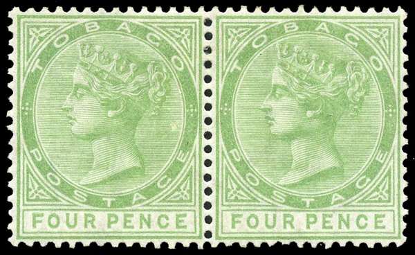 1880 4d yellow-green pair, large part o.g. Fine. SG 10