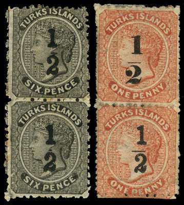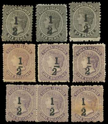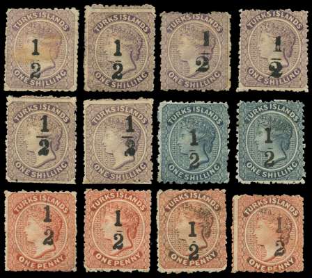 Turks Islands 1881 ½ surcharge group