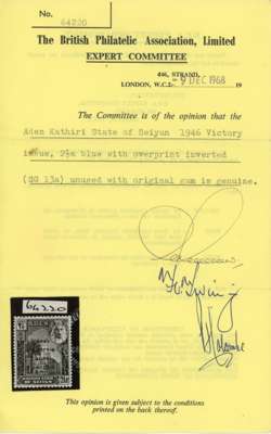 1946 2½a Victory overprint inverted, BPA certificate (1968) scarce and fine o.g. SG 13a
