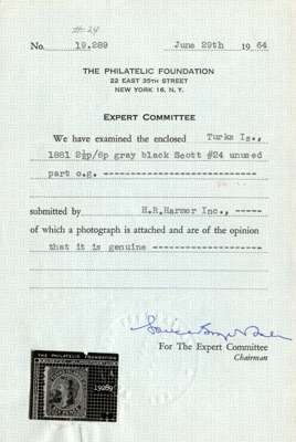 1881 ‘2½’ (setting 7, type 22) on 6d black, small part o.g, one short perf at top. A collectable example of this rare stamp, with good colour. Philatelic Foundation Certificate (1964). SG 32, £10,000