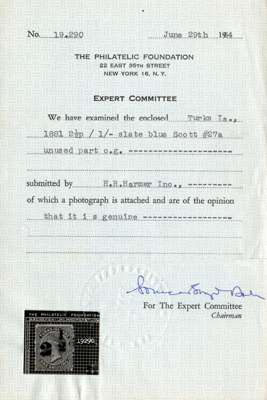 1881 ‘2½’ (setting 9, type 26) on 1s dull blue, small part o.g., some perf toning. A collectable example of this rare stamp, with reasonable colour. Philatelic Foundation Certificate (1964). SG 40, £15,000