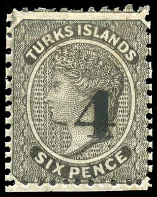 Turks Island 1881 '4' on 6d black type 30 surcharge