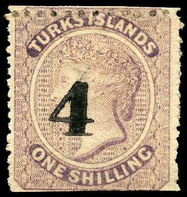 Turks Island 1881 '4' on 1s lilac type 30 unused