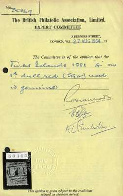 1881 ‘2½’ (settings 2-6, type 29) on 1d dull red, neatly cancelled with ‘T1' in bars. BPA Certificate (1964). Fine. SG 47
