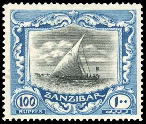 1913 100r black & blue ‘Dhow’ large part o.g. odd minor wrinkles, and some gum adhesions, still of fresh appearance, an attractive example of this scarce high value SG 260f £1200