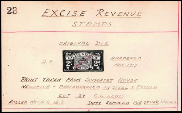 Extraordinary and highly specialised collection of Great Britain Entertainment duty issues in album, containing an incredible FIFTY-NINE unique die proofs, many from the personal archive of the Royal Mint engraver H. A. Richardson overprinted ‘CANCELLED’ in red sans-serif capitals, but two trial die proof in inverted colours set in sunken card are highly unusual. As well as a comprehensive range of mint values and some Specimen overprints, the collection also includes 55 tickets or ticket halves, contemporary documents on the usage of these issues, lozenge overprint trial settings of 4 (deliberately misperforated), and a large selection of imperforate colour trials, some set on HM stationery office headed paper. Viewing recommended, there is even more that can't be mentioned here. A truly amazing collection which would write up into a beautiful competitive exhibit.