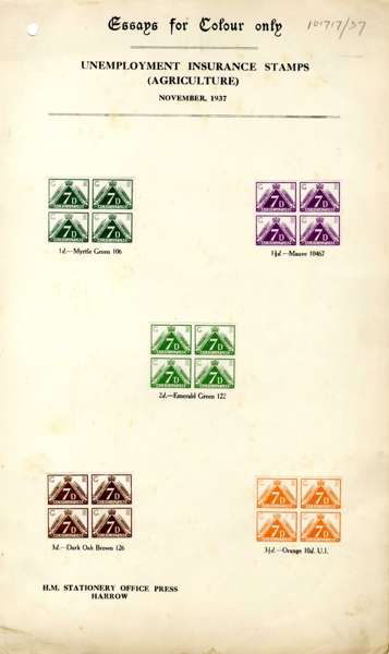 GB Great Britain Unemployment Insurance (Agriculture) revenue colour trials for 1937 issue