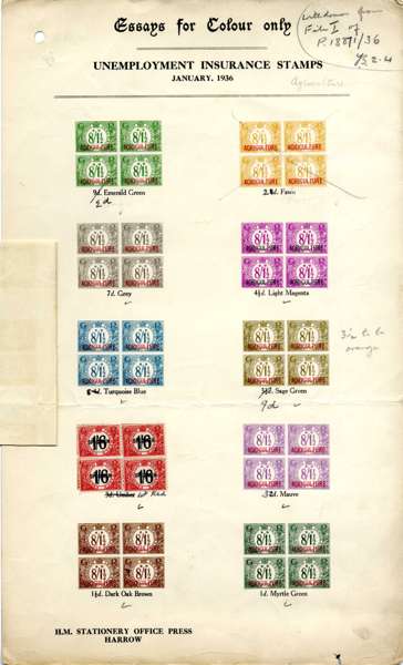 GB Great Britain AGRICULTURE UNEMPLOYMENT INSURANCE revenue unissued colour trials