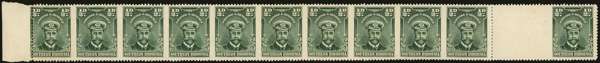 [See Peetoom pp. 76-7, nos. 3-4, but his "no. 3" (a strip of ten additionally imperf at left margin, ex Kaplan) is surely a phantom listing, as it can be detected from the poor illustration that (misplaced) perfs WERE in fact present at the left margin, despite Peetoom's claim to the contrary.]
