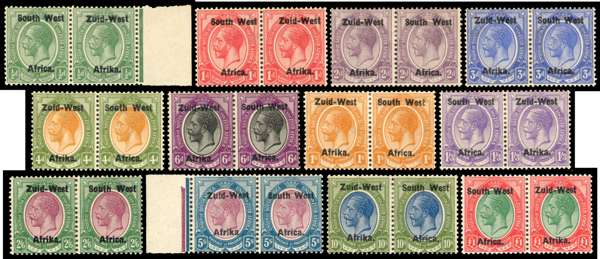 1923 (Jan-Jun) set of 12 horizontal pairs to £1, Setting I, large part o.g. to o.g., the 10s with one short perf otherwise a fine and very scarce set. SG 1/12, cat £2500