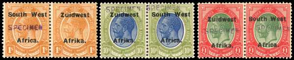 South West Africa 1923-26 1s, 10s, £1 h/s specimen