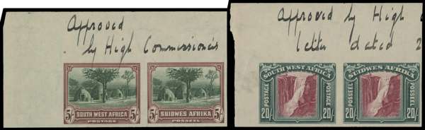 South West Africa 1931 set of imperf plate proof pairs