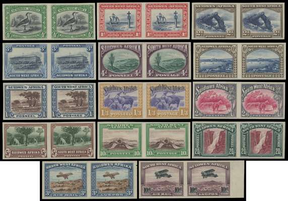 South West Africa 1931 pictorial set of imperf plate proof pairs