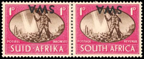 South West Africa 1945 Victory 1d overprint inverted mint