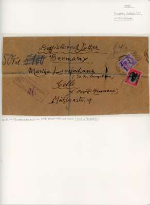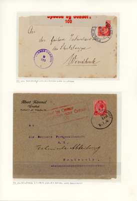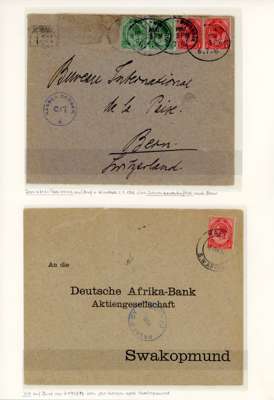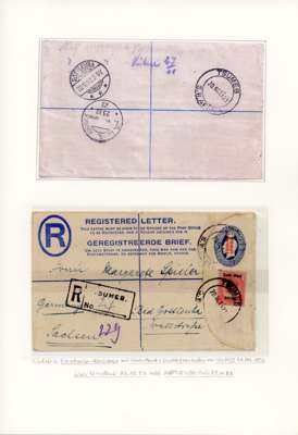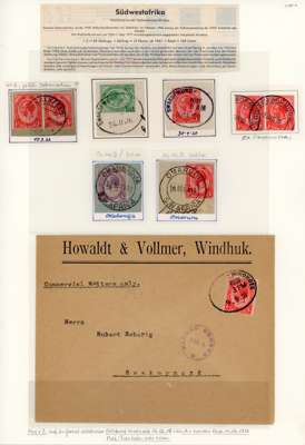 1916-22 a selection of South Africa used in South West Africa, neatly displayed on album leaves, including cancels, loose stamps, covers, 4d registered stationery envelope uprated with 1½d (2), plus 1923-28 postal history range. Mixed condition, with good to fine.