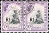 1961 1r on 10s surcharge type III horizontal pair fine used. SG 76b