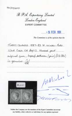 Turks Islands SG 58a ERROR IMPERF BETWEEN