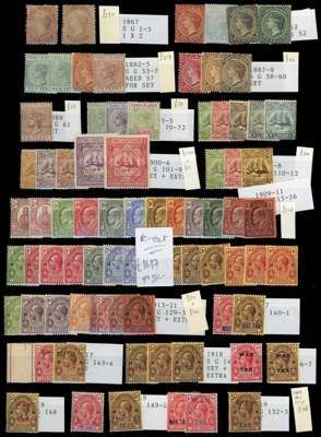 Mint on stockcards including 1867 1d dull rose, two examples (faults), 1881 to 1s, 1882 to 2½d, 1900 to 3s, 1909, 1913 to 3s, 1921 to 1s, 1922 to 3s, 1928 to 10s, 1935 Silver Jubilee, mainly good to fine. (119)