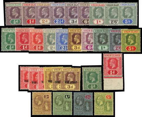 VIRGIN IS: Mint on stockcards including 1866 1d, 6d, 1878 1d wmk upright, 1879 1d and 2½d, 1883 to 2½d, 1887 to 1s