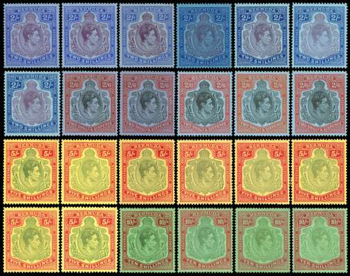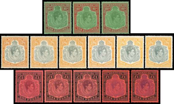1938-53 keyplate collection mint. Complete with every printing listed by SG, a very fine reference collection, a few with gum a bit dark but mostly fine or very fine. The November 41 5/- with excellent colour, the 12/6d ‘lemon’ with BPA Certificate (1996). SG 116-121d, £7892