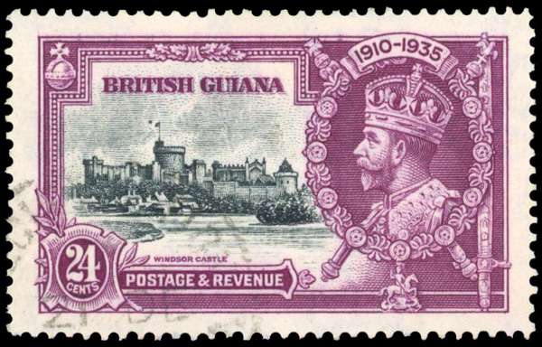1935 Silver Jubilee 24c slate & purple, variety ‘Dot by Flagstaff’ lightly used by part cds, fine. SG 304h £550