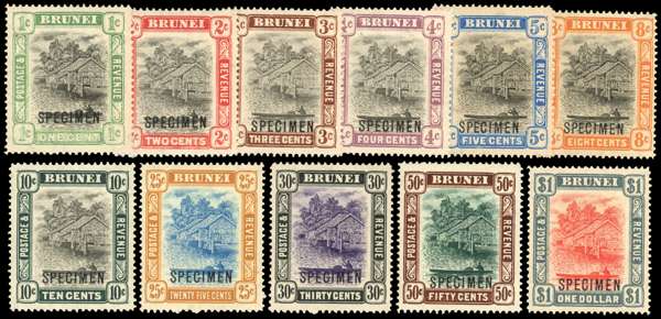 1907 set of eleven overprinted SPECIMEN Type D12a, large part o.g., a few minor condition issues but mainly fine. 1c and 2c with reversed watermark. SG 23s-33s, £325