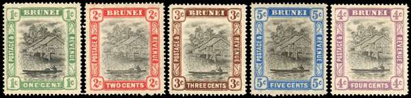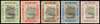 1907-10 1c, 2c, 3c and 5c with watermark reversed, large part o.g., fine save the 5c with a darker central patch on reverse; 4c inverted watermark, fine but for a minor wrinkle. SG 23x/27x, £507